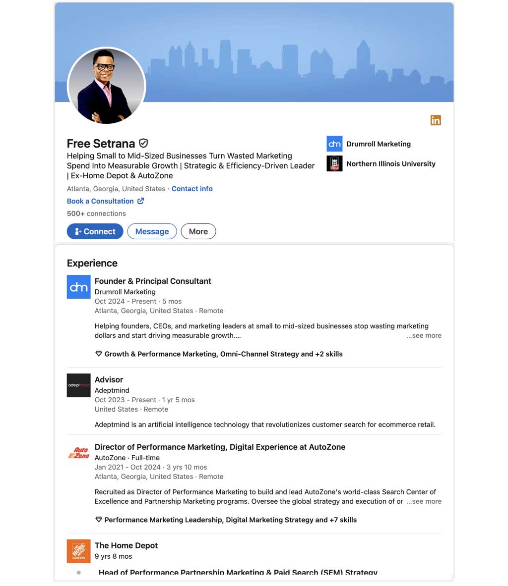 Meet Free Setrana. With 15+ years leading performance marketing for iconic U.S. brands, he knows what works—and what doesn’t. Now, he helps small to mid-sized businesses transform wasted spend into sustainable, measurable success.